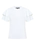 The French Connection Aylaa Krista Mix Sleeve Top by French Connection pairs a soft knit bodice with airy, double-ruffled flutter sleeves for effortless contrast. In fresh Linen White, it feels light, modern and endlessly wearable. Ribbed trims frame the silhouette with subtle structure, balancing romance with polish. An easy statement for days that turn into evenings.